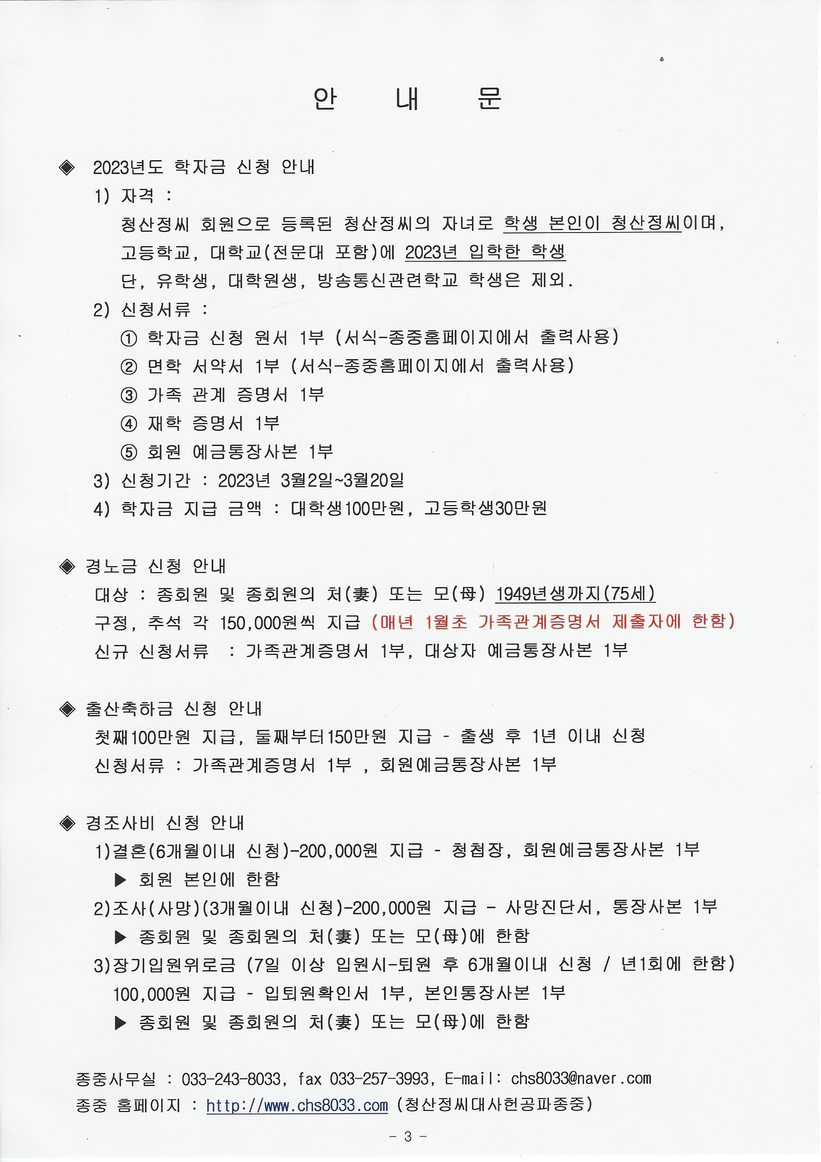 2023년 복지사업 안내 (학자금, 경노금. 출산축하금 경조사비)