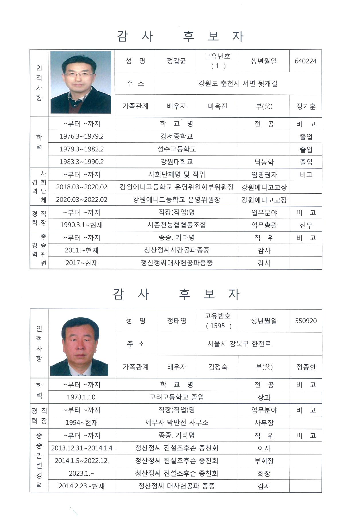 임원 후보 (감사)