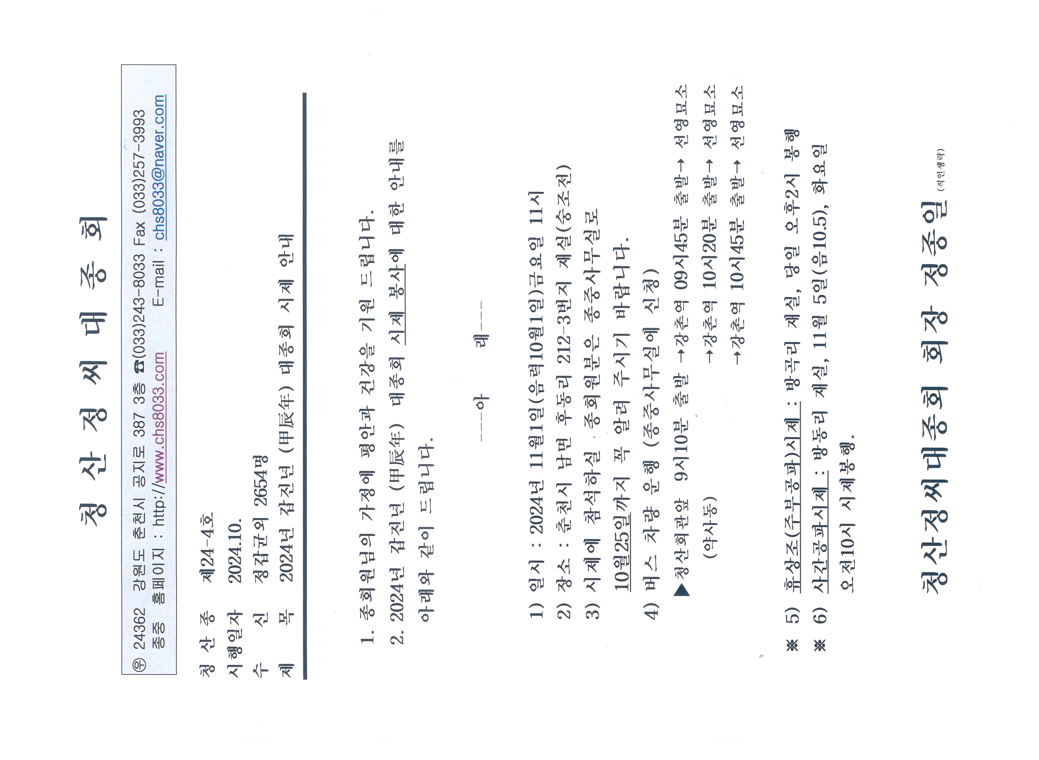 2024년 (갑진년) 대종회 시제봉핻 안내