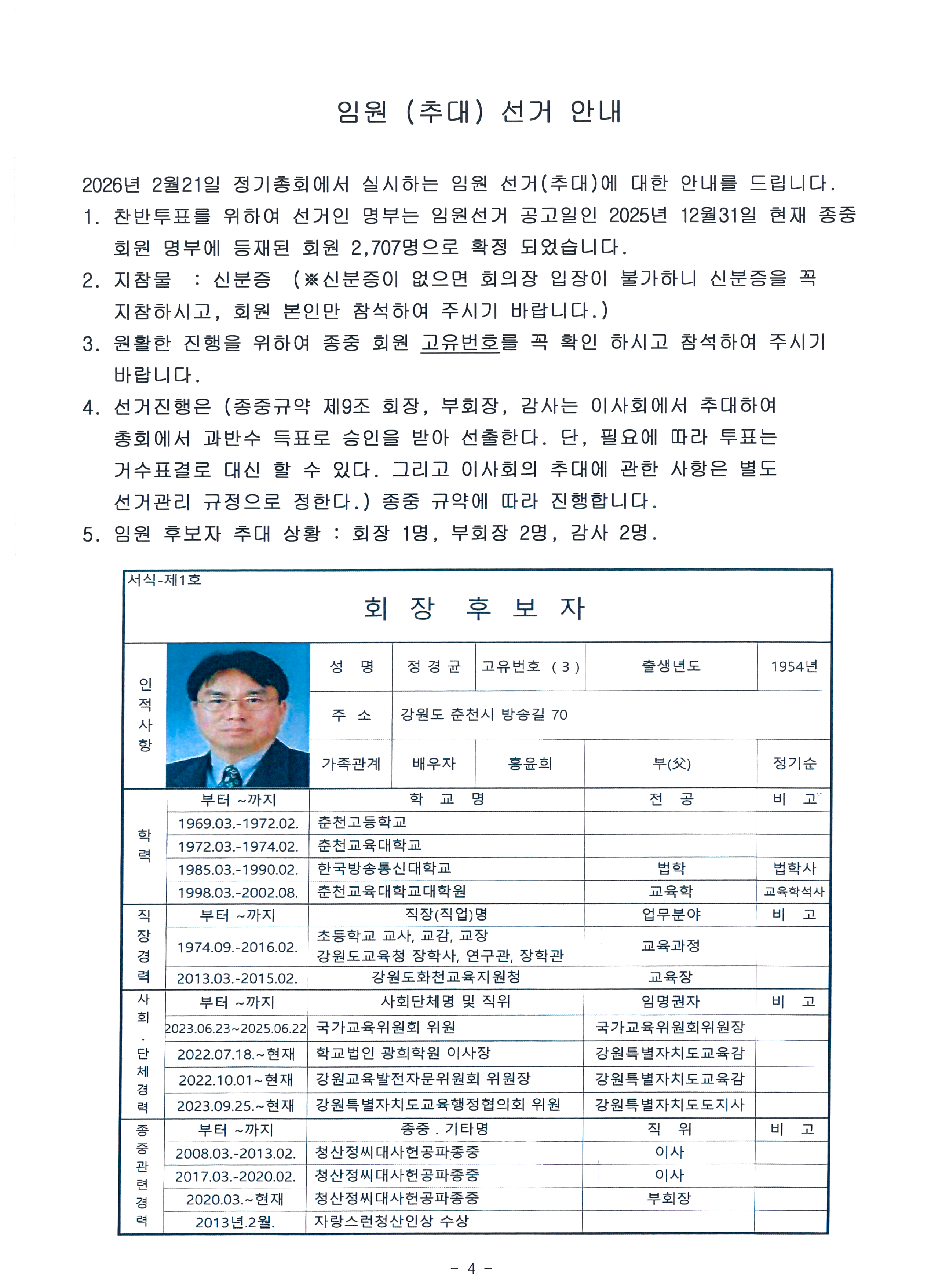 임원 후보 (회장)